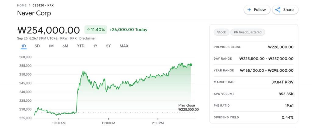 The disclosure came after a dramatic 11 percent surge in Naver’s shares, sparked by reports that the two companies are exploring a potential merger deal that could reshape the country’s digital economy.